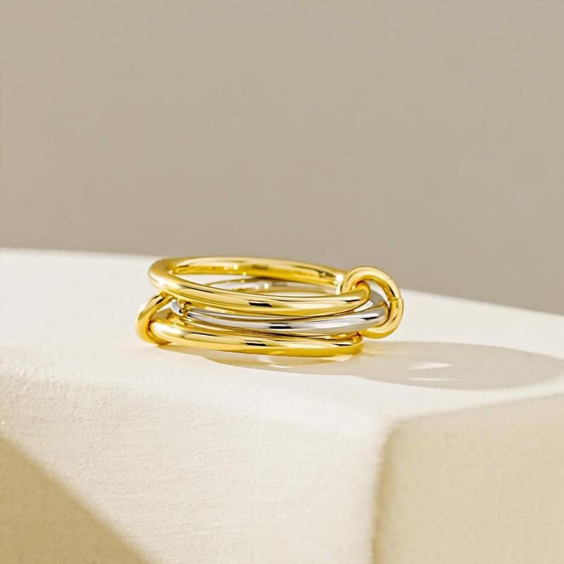 - stackable rings for women:A delicate, simple stackable ring trio, interlocked for a clean look with effortless elegance. Stack them on a single finger or spread them across different digits for a unique, personalized style