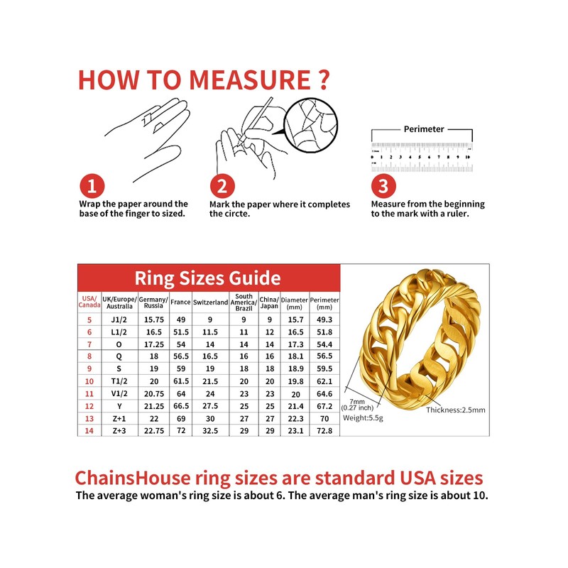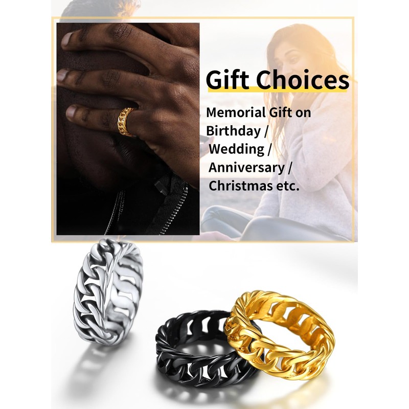 - ✦Cuban Link Rings - Quality Stainless Steel Built, Keep Color Forever. Never Fade, Highly Resistant to Rust and Corrosion.