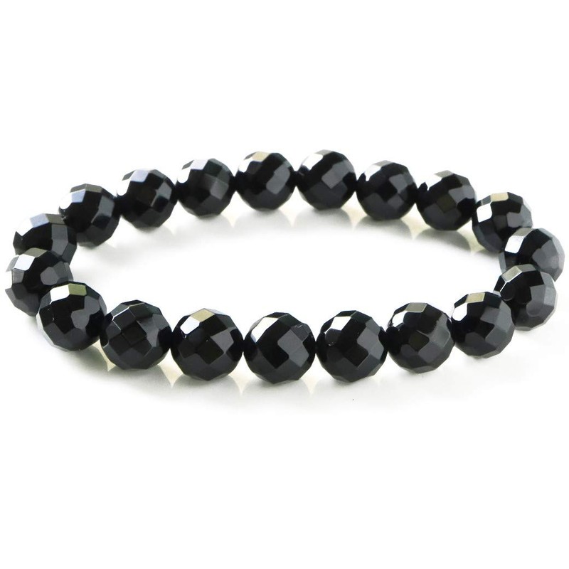 GOLD STONE Men's Women's Onyx Bracelet Black Agate Natural Stone Power Stone 64 Side Cut 0.4 inch (10 mm) Inner Circumference Approx. 7.9 inches (20 cm)