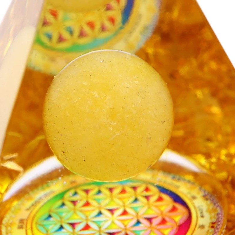 Gold Stone Orgonite Pyramid Figurine, Natural Stone, Power Stone, Purification, Aragonite, Round Ball Included, Citrine