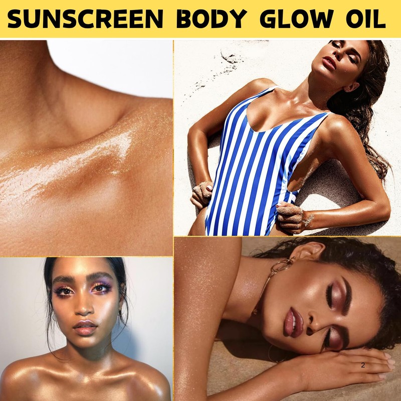 - Glow & Shimmer Effect: Achieve a radiant and glowing complexion with this shimmer body oil for women. The lightweight formula delivers a subtle shimmer and shine, enhancing your natural glow while providing sun protection. Perfect for special occasions or daily use to add that extra sparkle to your skin