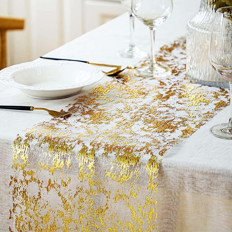 Gold Table Runner Glitter Metallic Gold Runners Roll Sequin Thin Mesh Table Runner for Event Party Wedding Birthday Party Glam Table Decorations