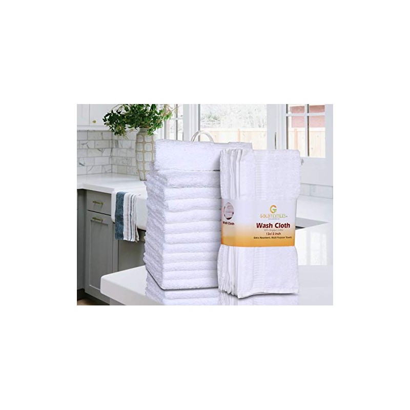 GOLD TEXTILES Luxury Cotton Washcloths (24-Pack,Bright White,13x13 Inches) - Easy Care,Thick Super Soft Highly Absorbent Quick Dry, Premium Cotton Hand Towels (24, White)