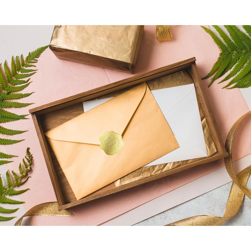 - Gold Embossed Wax Seal Stickers:Our wax seal stickers feature a beautifully embossed "Thank You" message and an elegant wheat ear design, adding a sophisticated and romantic touch to any occasion. The gold foil finish enhances their unique and refined appearance.