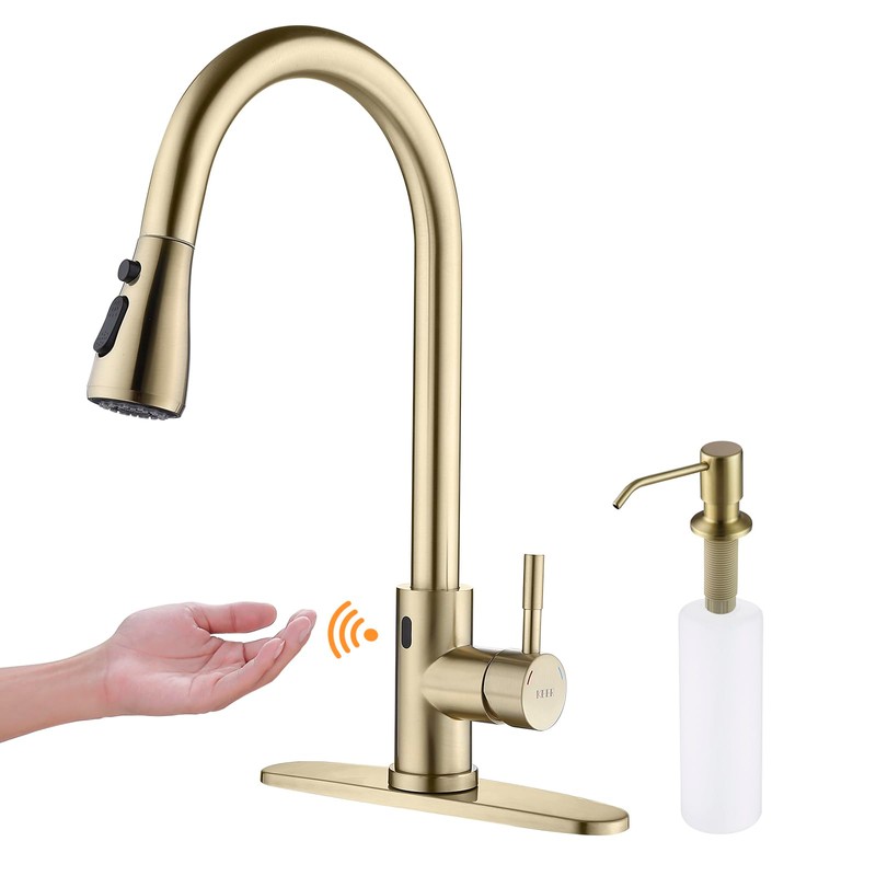 Gold Touchless Kitchen Faucet with Motion Sensor, Pull Down Sprayer & Soap Dispenser - Single Handle High Arc Pull Out Faucet for Kitchen Sink & RV