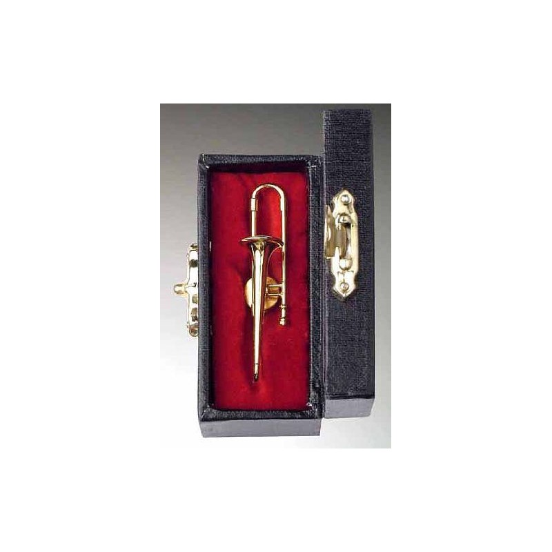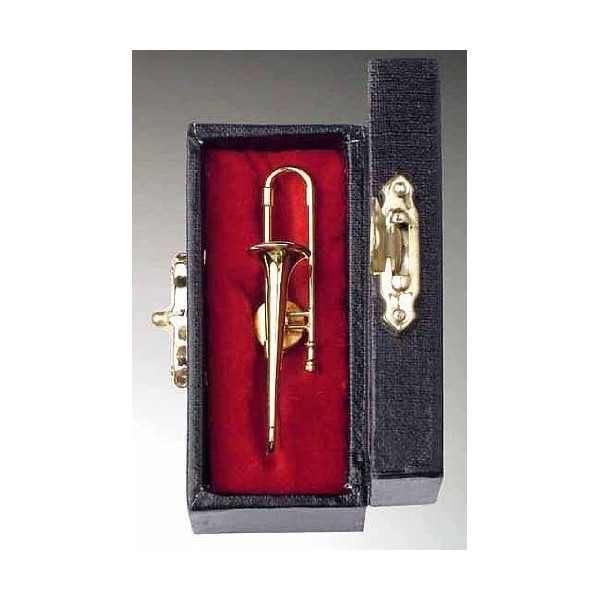 Gold Trombone Pin w Instrument Case Musical Gift New