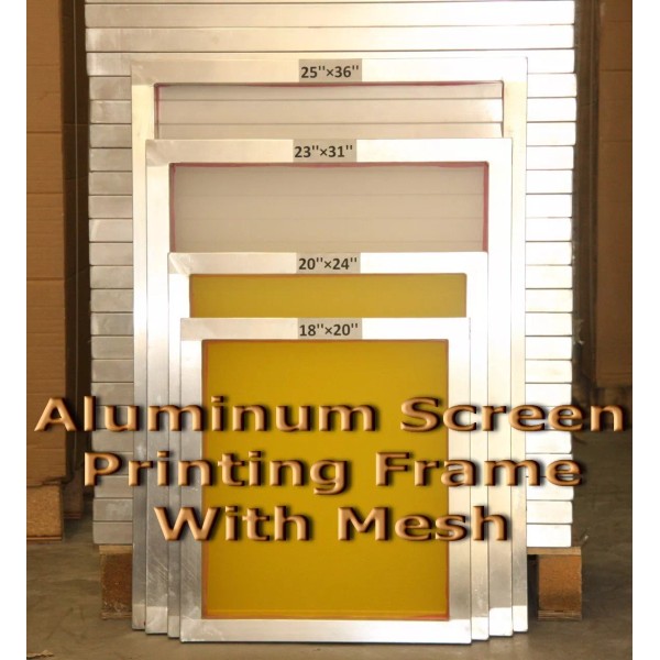6 Pack - Aluminum Silk Screen Printing Screens With 200 Yellow Mesh 23"x 31" OD. 20"x 28"ID. Tubing: 1.5"x 1.5" Our pre-stretched screens are constructed by three elements: Aluminum Frame, Adhesive and Mesh. Our aluminum frames are constructed with AL6063T5 Alloy, It has high strength, light weight and free of deformation. Each frame are welded with TIG machine; all corners are completely sealed to prevent ink from leaking. Sandblasted on adhesive(mesh) side increases the bonding area created higher bond strength, and other sides are finished with polished and smooth appearance. Our adhesives is specifically formulated to bond fabric (mesh) to aluminum. It offers an excellent chemical resistance with very high shear strength. And yet it can be removed without hurting the aluminum frame, which gives user an option on re-stretching as many times. All our screens are stretched by 100% monofilament polyester mesh. The mesh holds the following characters, low-elongation, precision bore, and high stability. It provides easier registration on printing process, and its uniformity weaving and passage-free through the mesh, give even more detail and clear prints. In stock and ready to ship! UPS freight is calculated based on the dimension of the package, not the actual weight.