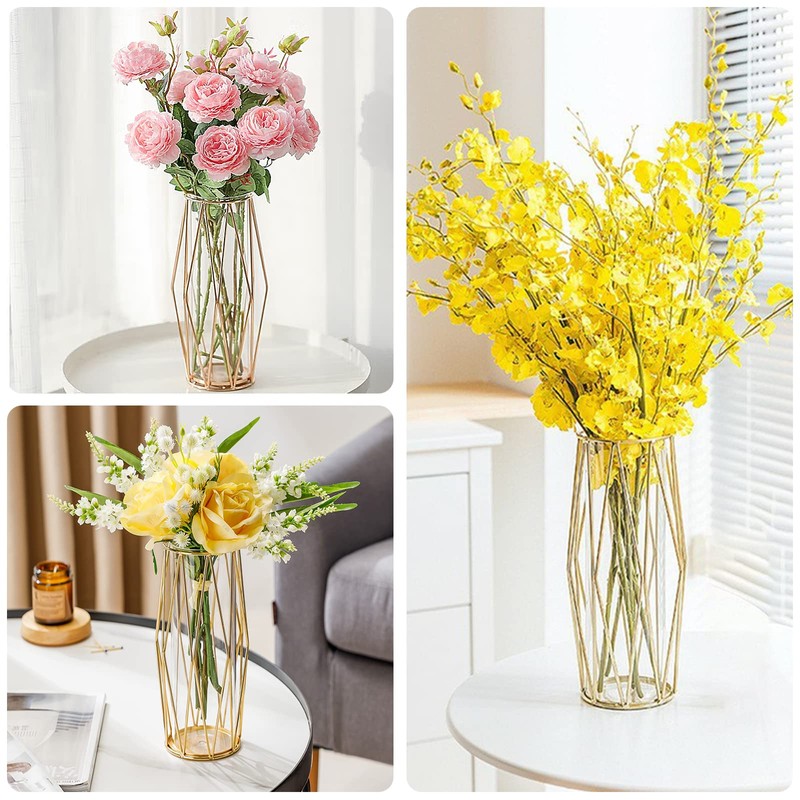 - VASE DECOR: Decorative glass flower vase made of glass with metal stand with high-quality painting, simple yet attractive. Geometric vase holder can have different shapes, bring your flowers a beautifully designed display with 1 cylindrical test tube vase.