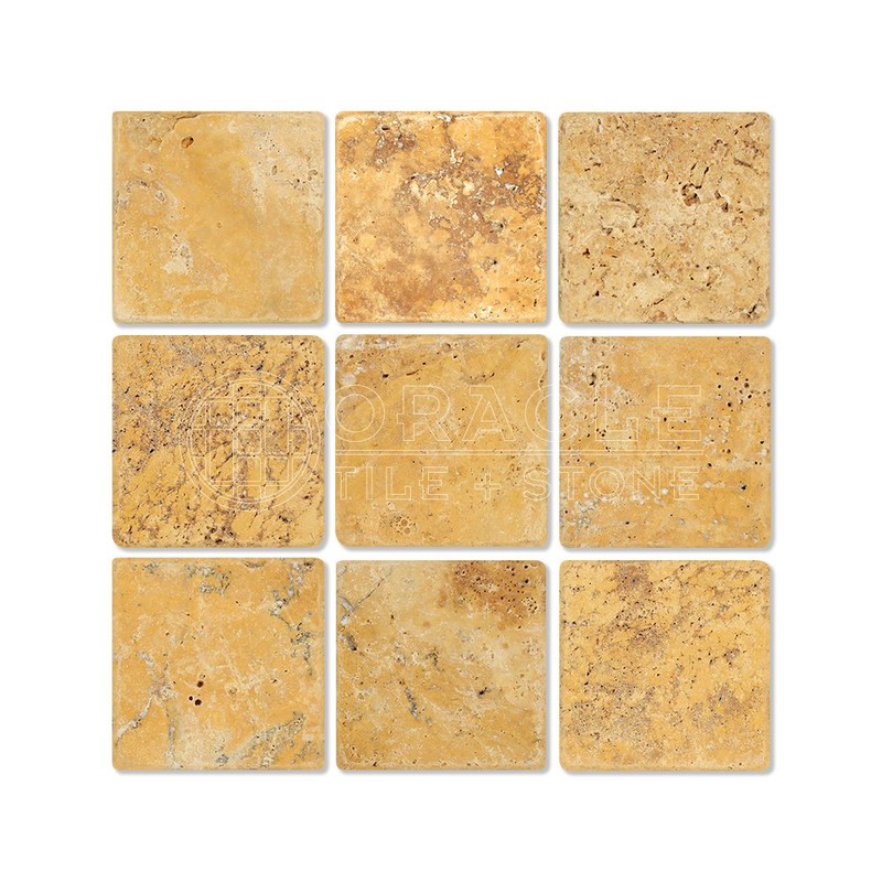 Gold (Yellow) Travertine 4 X 4 Field Tile, Tumbled