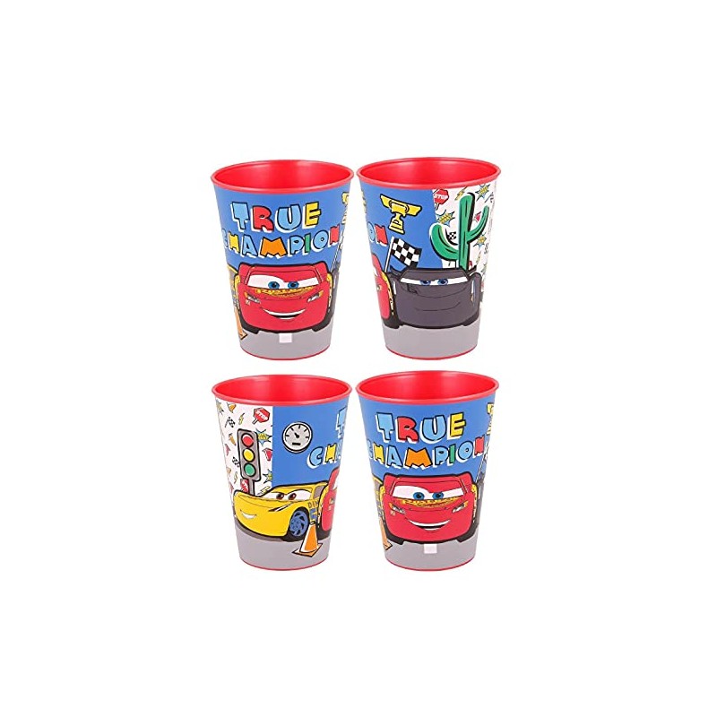 Gold1 4pc X Cartoon Character Drinking Cup Pack, Tumbler Re-Usable Plastic (Car Racer)