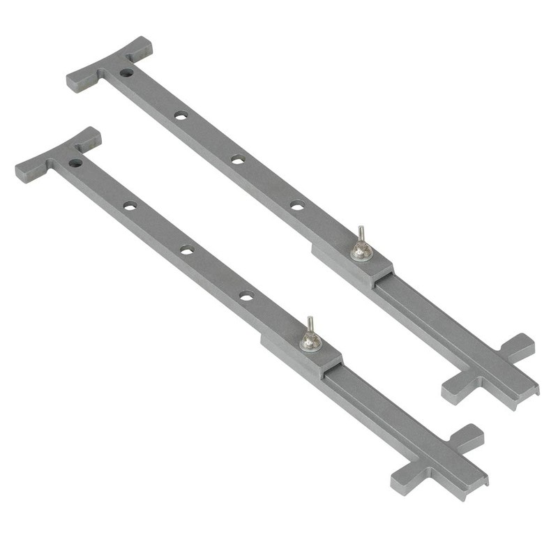 Used to stretch line across face of brick or block wall to insure level & even wall construction. Aluminum line stretchers pair used to stretch line across face of brick or block wall to insure level & even wall construction.