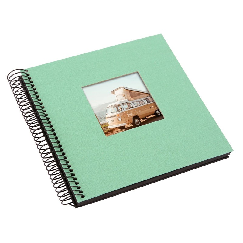 goldbuch Bella Vista Spiral Album, Linen Memory Album with Cut-Out Cover Photo Album with 40 Black Pages, Photo Book for Gluing, Photo Album, Neo-Mint, Approx. 20 x 20 x 2.7 cm