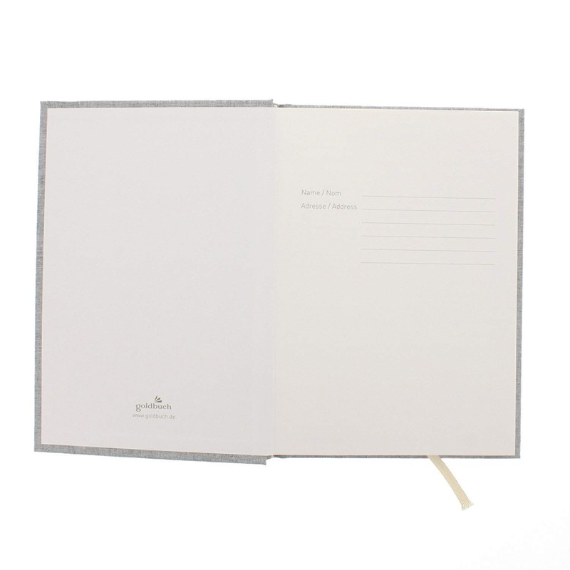 - Box contents: 1 Goldbuch Notebook Linum, 64919, DIN A5 format, pages: 200 Chamoisfarbene blank pages (100 sheets), Size: 15 x 22 cm, Material: cloth, Colour: Grey