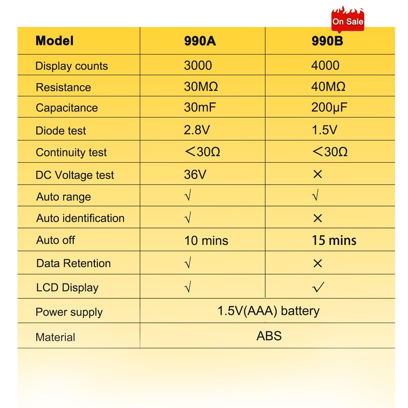 - 【Smart functions, easy to use】Automatic shutdown (15 minutes), relative value measurement hold and low battery warning save energy. Overload (OL) protection and automatic identification functions simplify LED/semiconductor testing. Say goodbye to misreading tiny components!