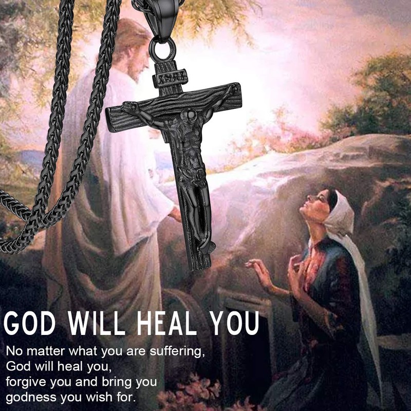 GOLDCHIC JEWELRY INRI Crucifix Necklace for Men Women, Black Jesus Cross Pendant Christian Jewellery