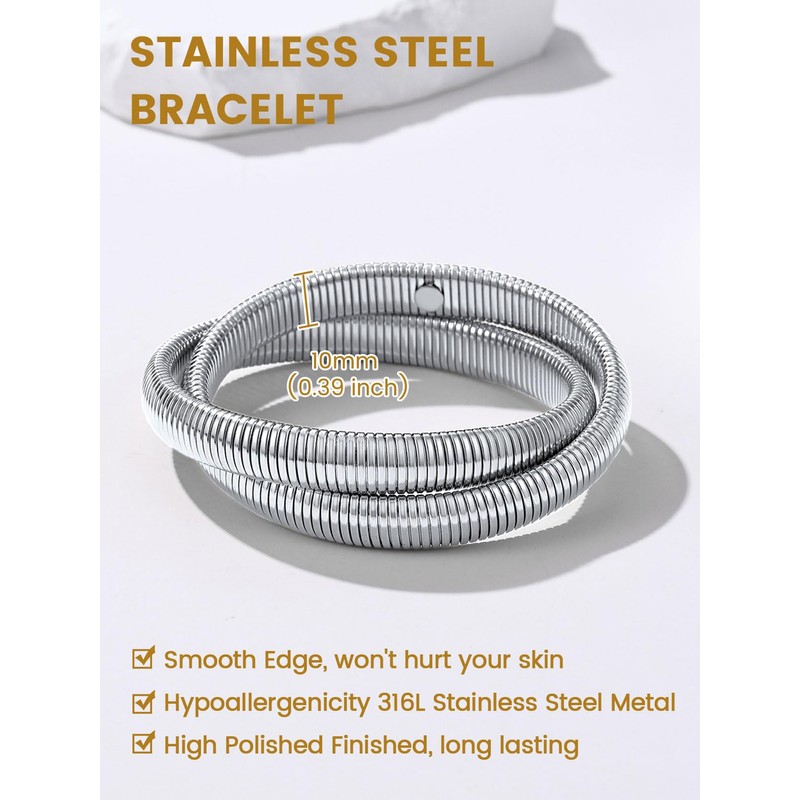 GoldChic Jewelry Stainless Steel Bangle Stretch Bracelets for Women, Double Cobra Bracelet 10mm