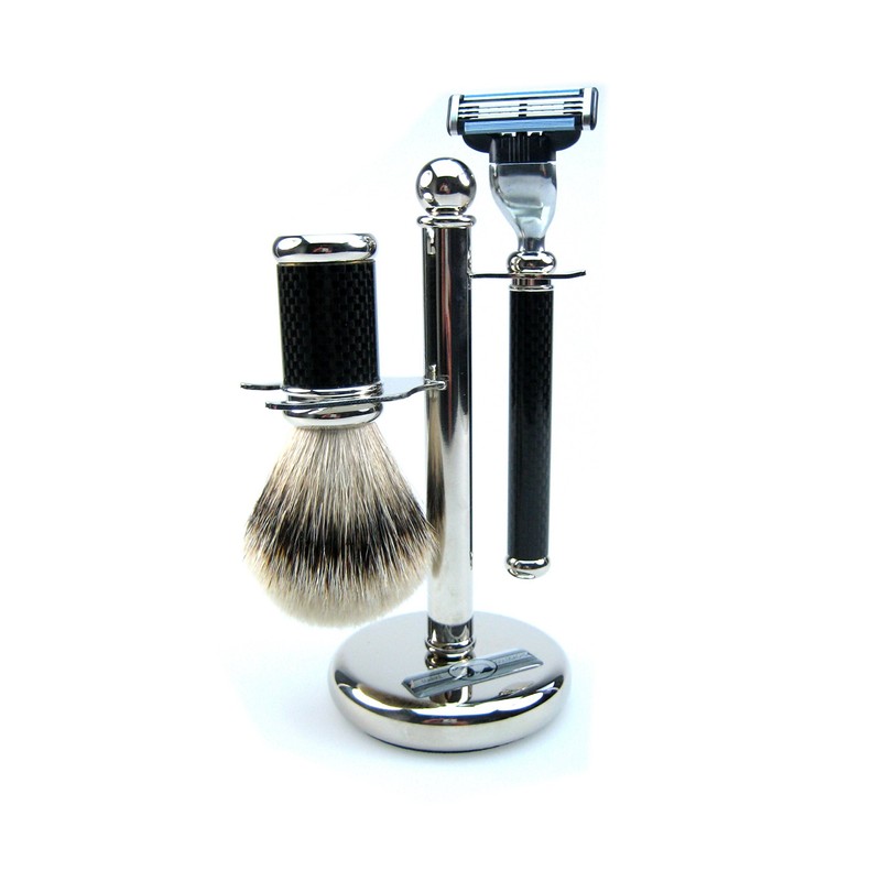 Golddachs Rasierset in Carbon-Optik 3-teilig