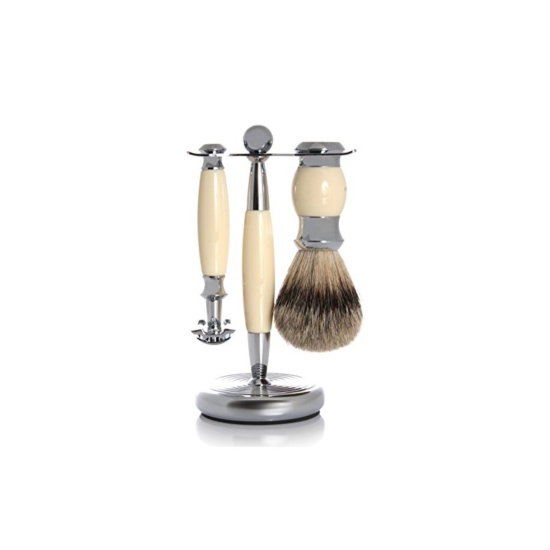 GOLDDACHS Shaving Set, Safety Razor, Finest Badger, White/Silver