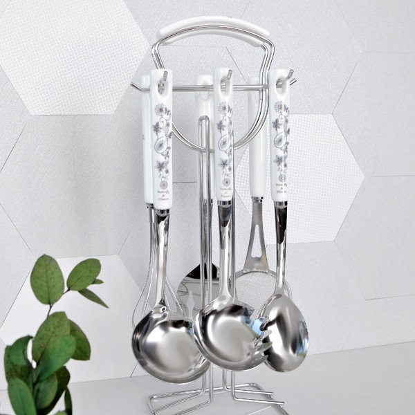 - Components: Kitchen utensils (ladle, noodle ladle, cooking spoon, scoop, whisk, net), stand