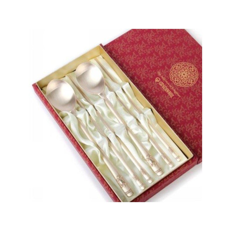 Golden Bell Embossed Balls Organic Spoon and Spoon Set / 골든벨 양각 완자 유기 부부수저 세트