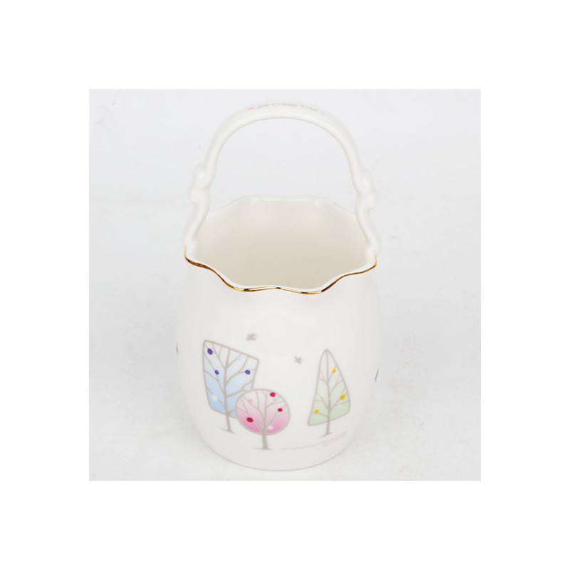 Golden Bell Ice Cream Wrinkle Bowl (Large) + Ceramic Teaspoon/Tea Fork 11P Set / 골든벨 아이스크림 주름수반(대)+도자기 티스푼/티포크 11P 세트