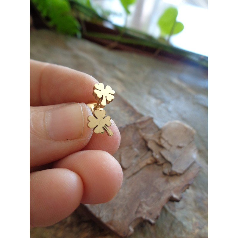 Golden clover leaf lucky stud made of stainless steel. Lucky charm earrings made of leaves, small studs, girls earrings, children's earrings, anti-allergic