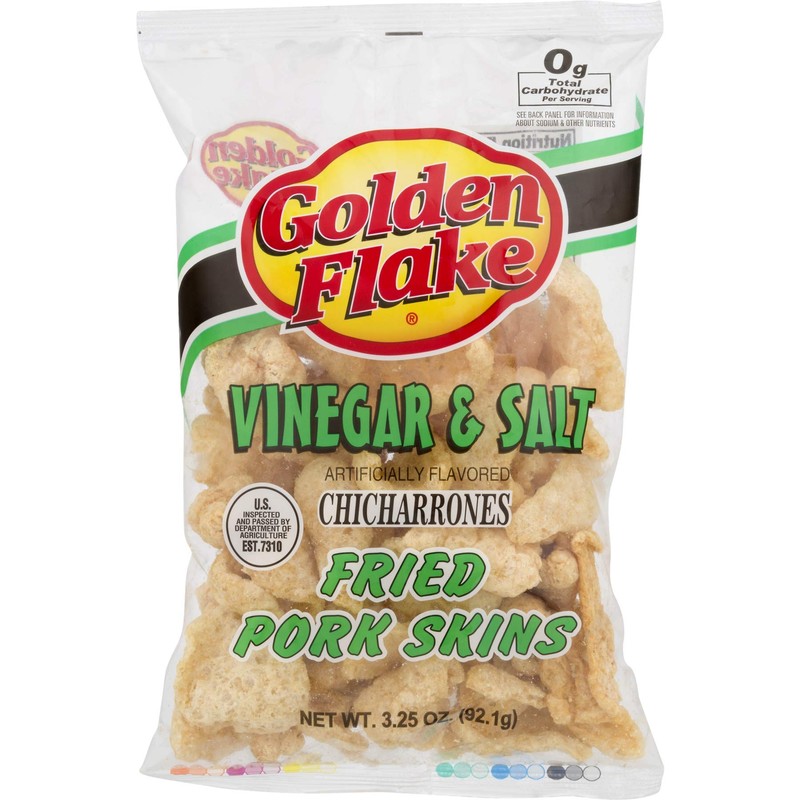 Golden Flake Vinegar & Salt Pork Skins 3 oz Pack of 4