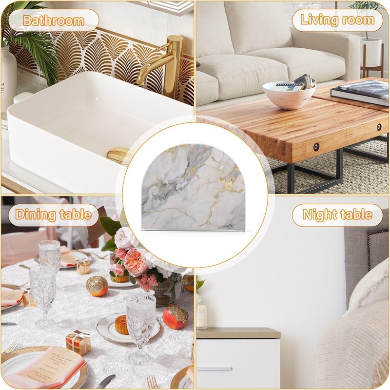 Golden Grey White Marble Napkin Holder, Acrylic Napkin Holders for Table Cocktail Napkins Dispenser Paper Stand for Home Kitchen Restaurant Bar, 1 Pc