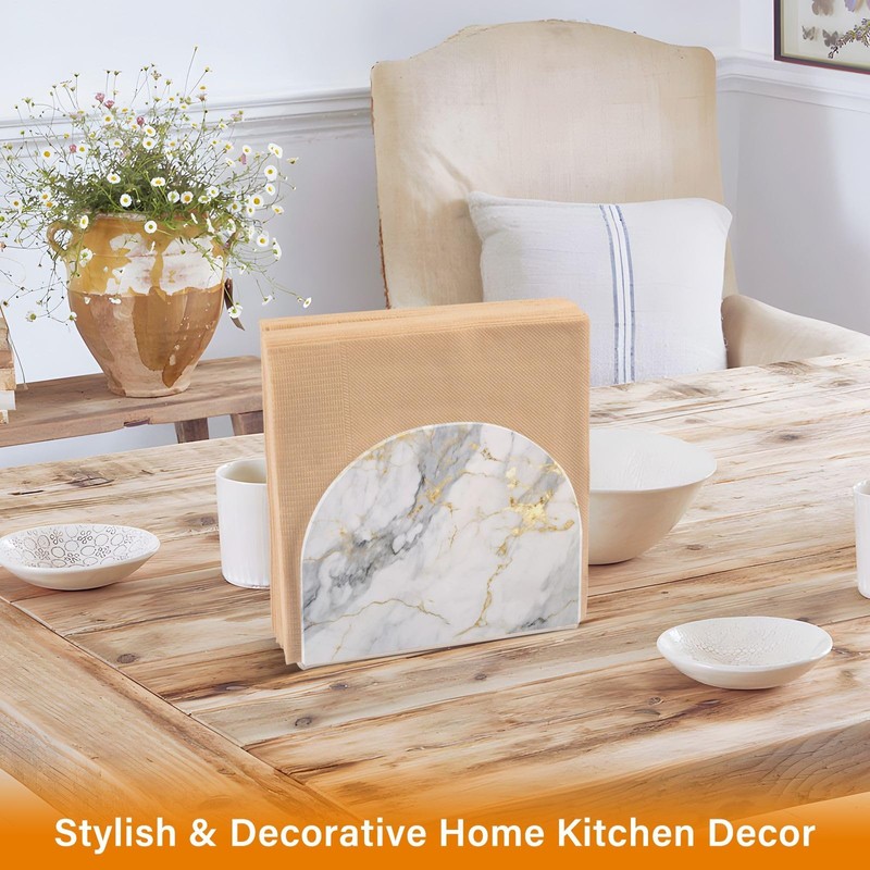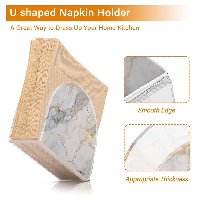 - [Acrylic Napkin Holder] -- The napkin holder is made of durable acrylic, one-piece molding, U-shaped design, it will neither scratch the countertop nor slip.