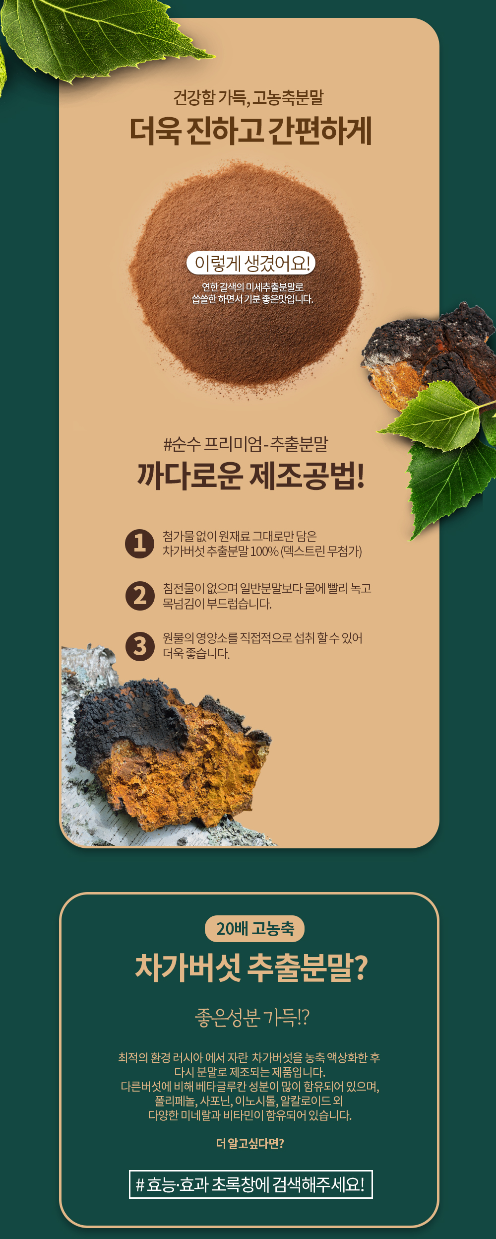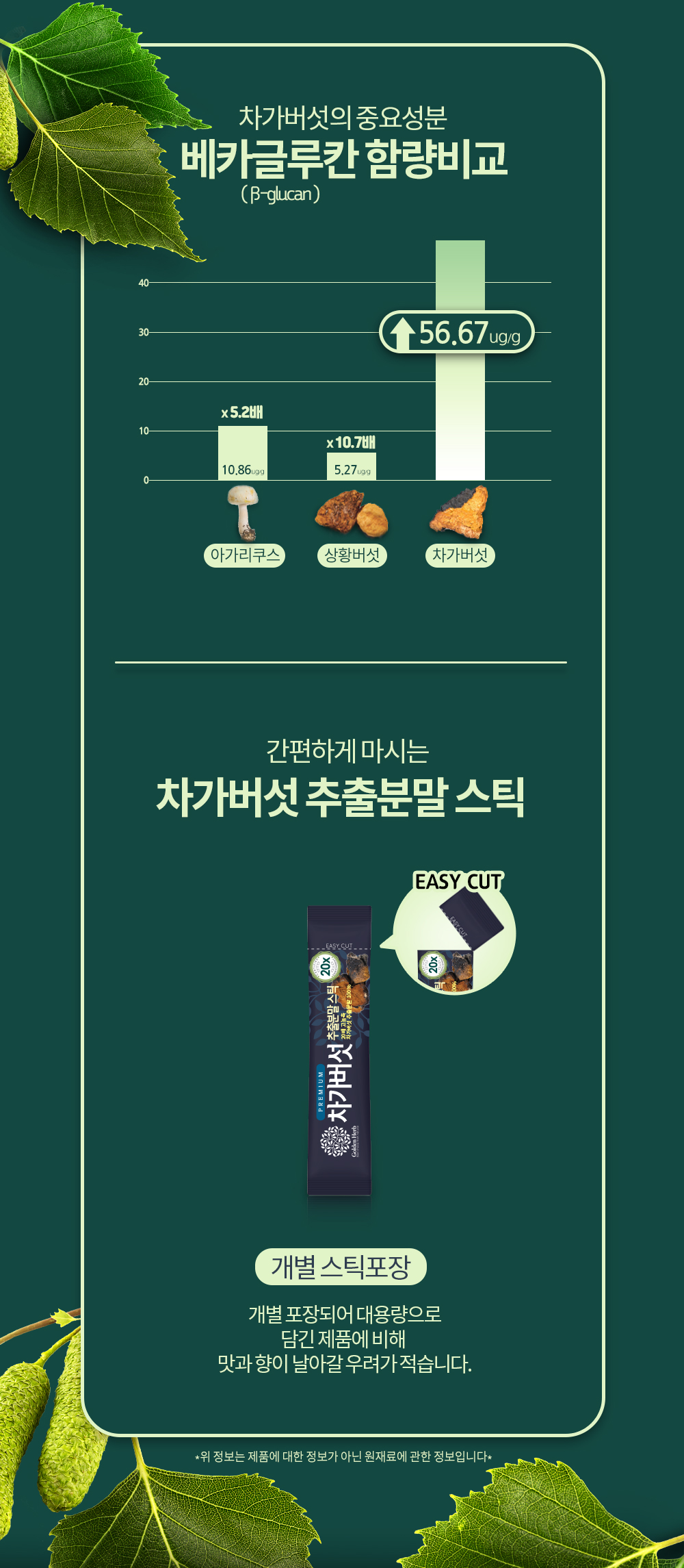 20배 농축 차가버섯 추출 분말 가루 스틱 60포