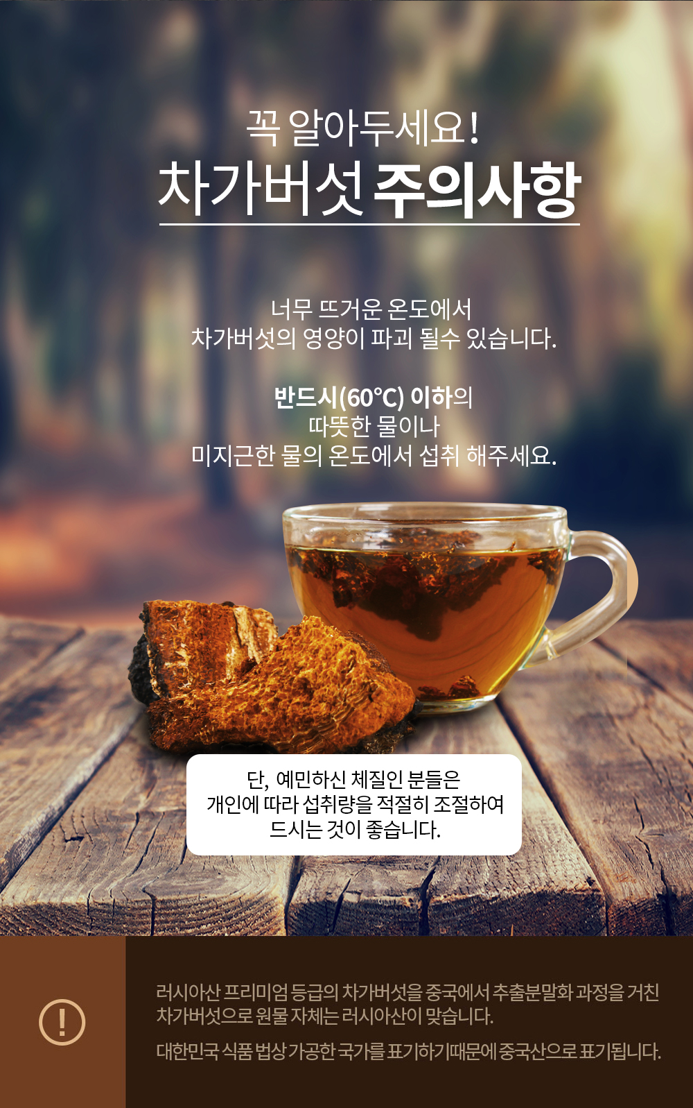 - Main ingredients/Content (Ingredient origin): Chaga mushroom extract 100% (Origin: China)
