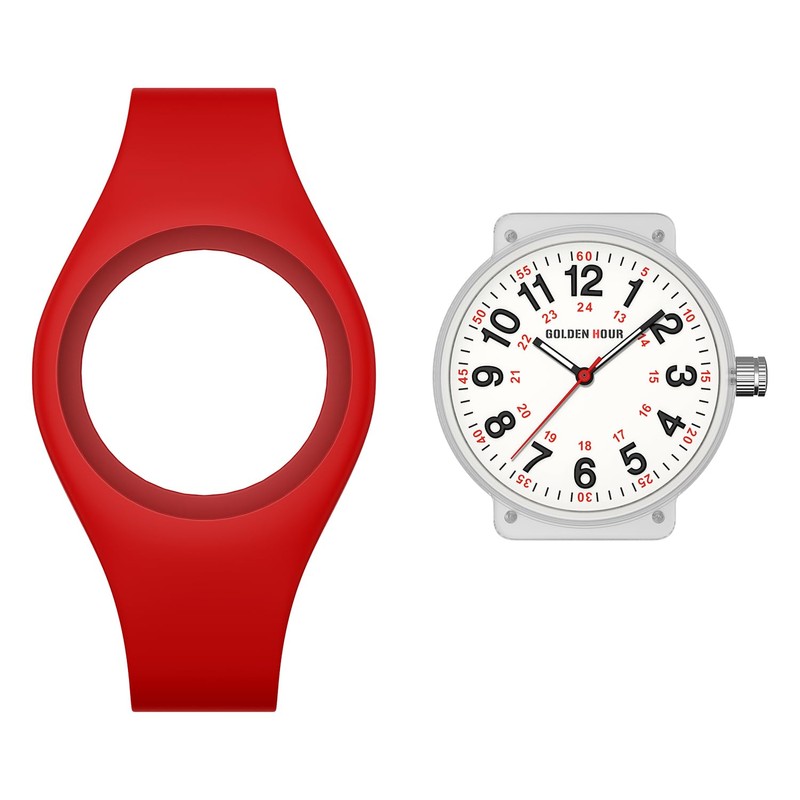 GOLDEN HOUR Waterproof Sports Analog Unisex Watches for Nurse Medical Professionals, Students - Military Time Glowing Easy to Read Dial, Jelly Silicone Strap in Red