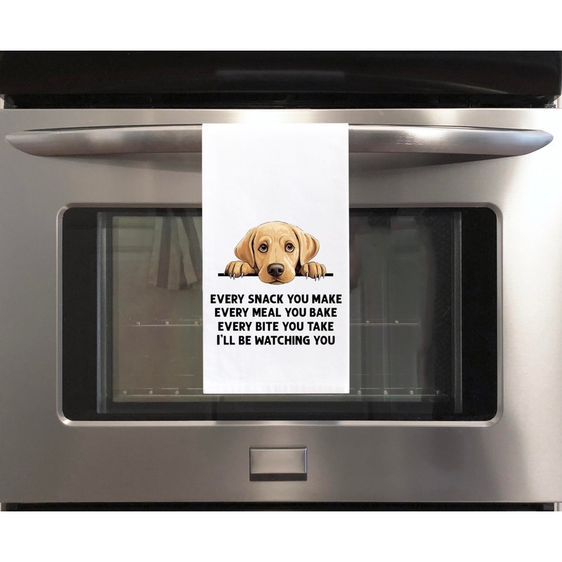 Golden Lab Every Snack You Make Flour Sack Kitchen Towel with Hanging Loop Funny Peeking Labrador Dog Dish Cloth Housewarming Hostess Birthday Christmas Gift
