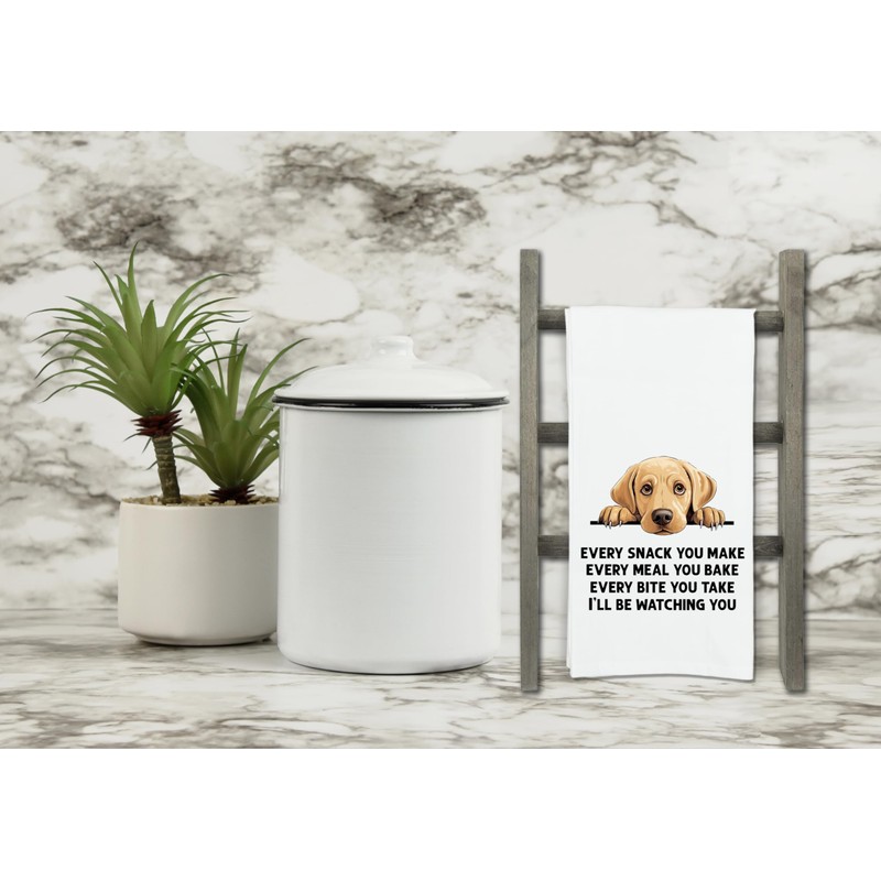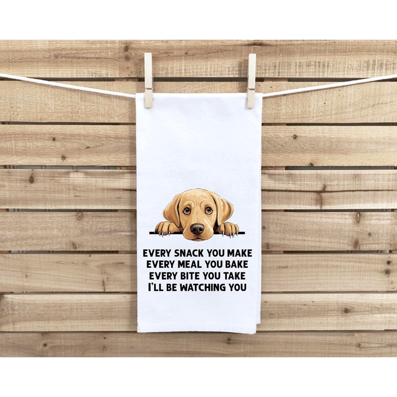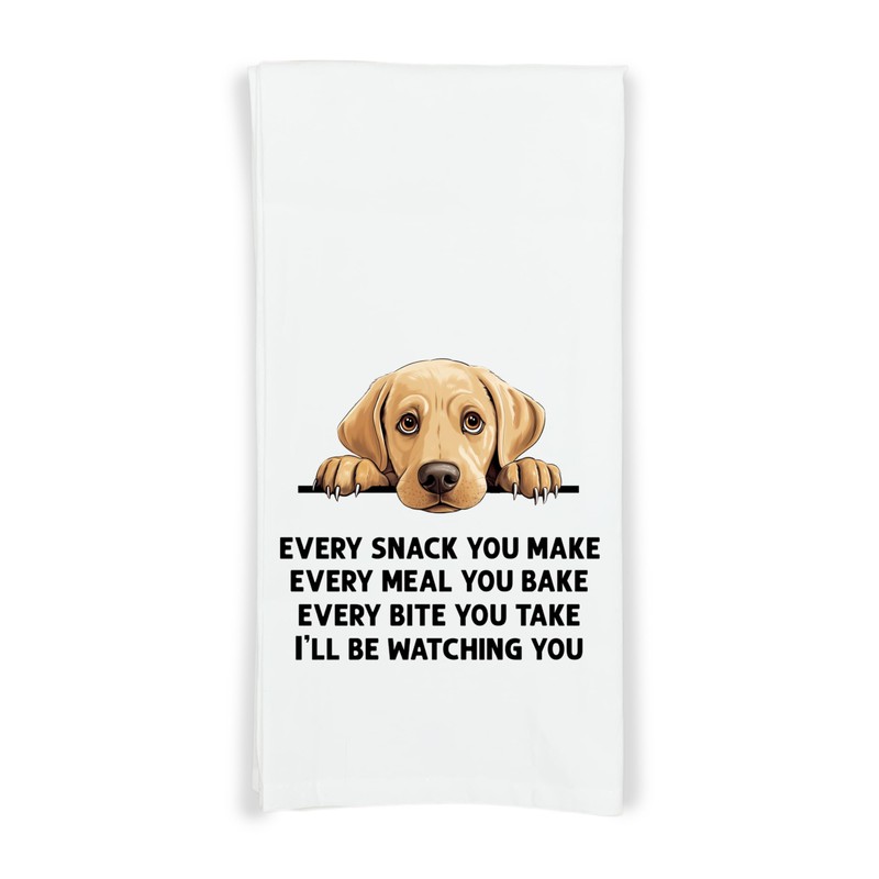 Golden Lab Every Snack You Make Flour Sack Kitchen Towel with Hanging Loop Funny Peeking Labrador Dog Dish Cloth Housewarming Hostess Birthday Christmas Gift