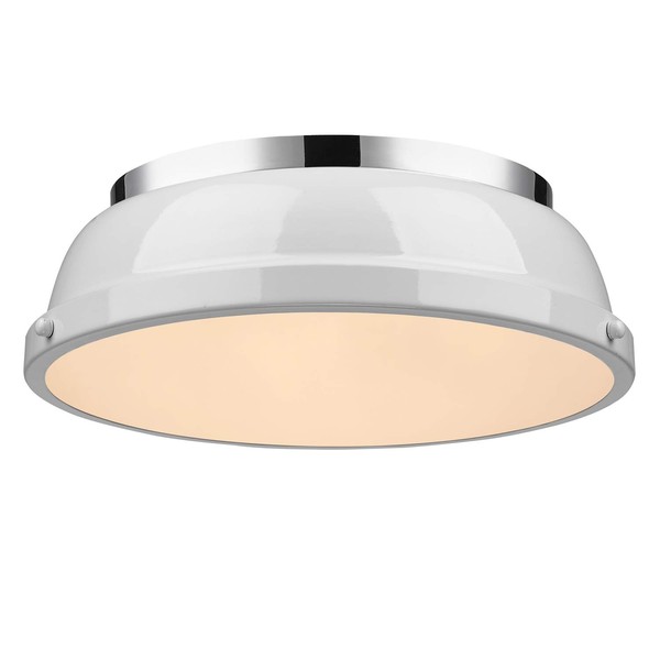 Golden Lighting 3602-14 CH-WH Duncan Flush Mount, Chrome with White Shade- Flush Mount Light Fixture, Flush Mount Ceiling Light, Ceiling Light Fixture, Light fixtures Ceiling Mount,