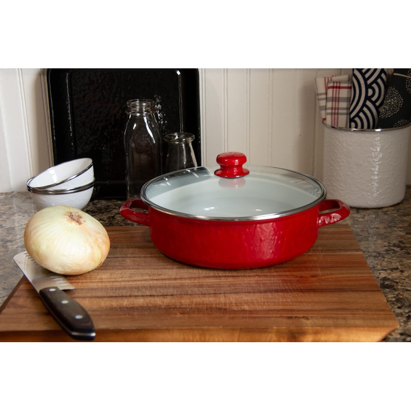 Golden Rabbit Enamelware - Solid Red Pattern - 3qt Saute Pan