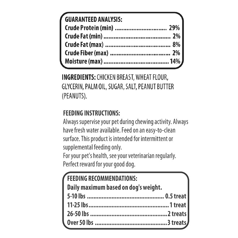 - ✓ SIMPLE INGREDIENT LIST WITH RECOGNIZABLE ITEMS – Made with chicken breast, wheat flour, peanut butter, and other familiar ingredients. A clear list that helps pet owners understand what they’re feeding without guesswork or unnecessary fillers.