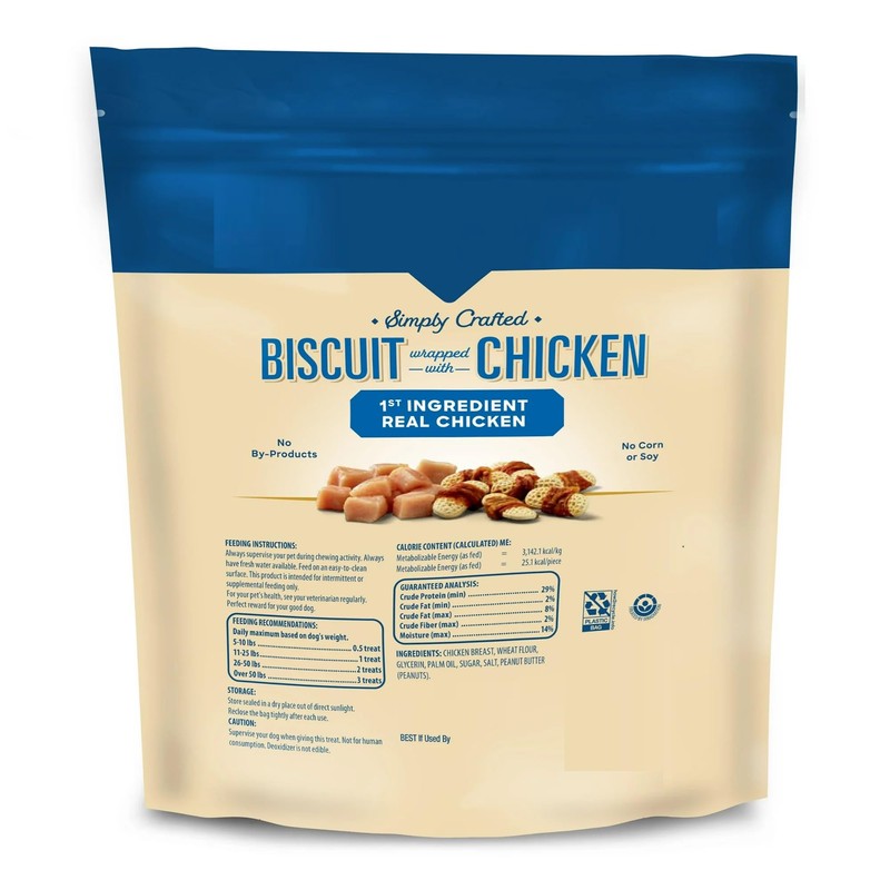 - ✓ CHICKEN WRAPPED DOG BISCUITS WITH PEANUT BUTTER FLAVOR – Delicious dry dog treats made with real chicken breast and a crunchy peanut butter-flavored biscuit center. A perfect combination of taste and texture that dogs enjoy during snack or training sessions.