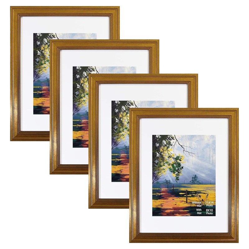 Golden State Art, 11X14 Dark Gold, Wall Hang Photo Frame. Includes White Mat for 8X10 Picture & Real Glass (Set of 4)