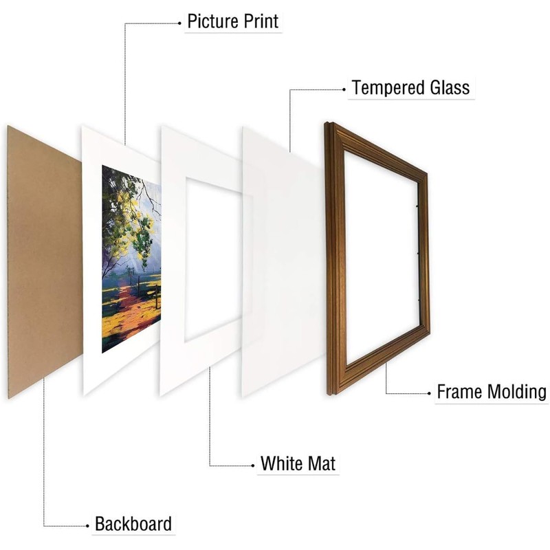 - New 11x14 Wall Hang Frame with a White Mat and Real Glass. Frame Overall size: 13x16 inches