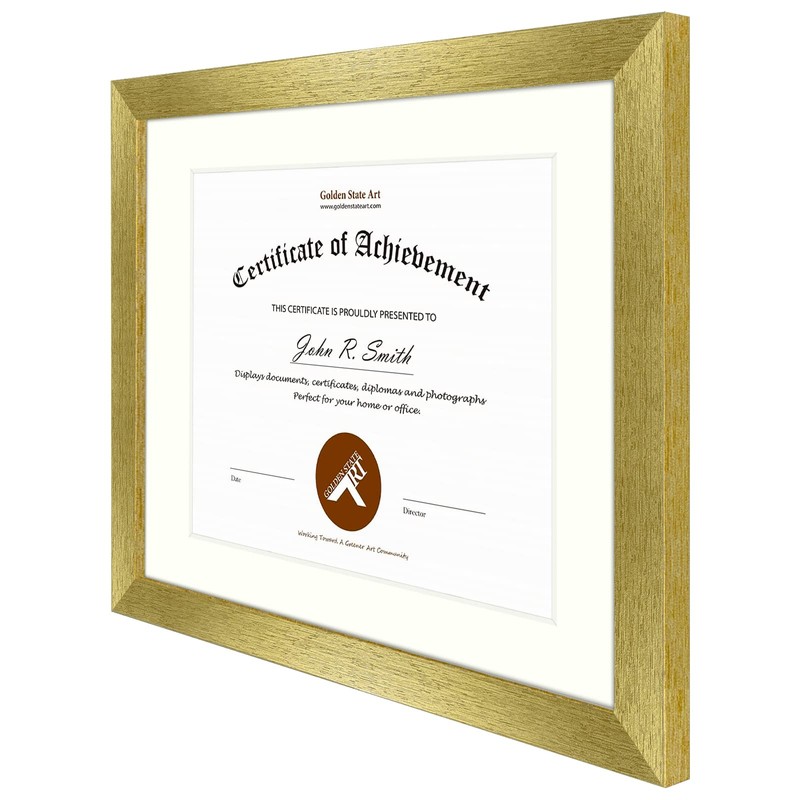 Golden State Art, 11x14 Gold Document Frame - Displays Frames for Diploma 8.5x11 with Mat or 11x14 Inch Without Mat for Wall Mounting (2-Pack)