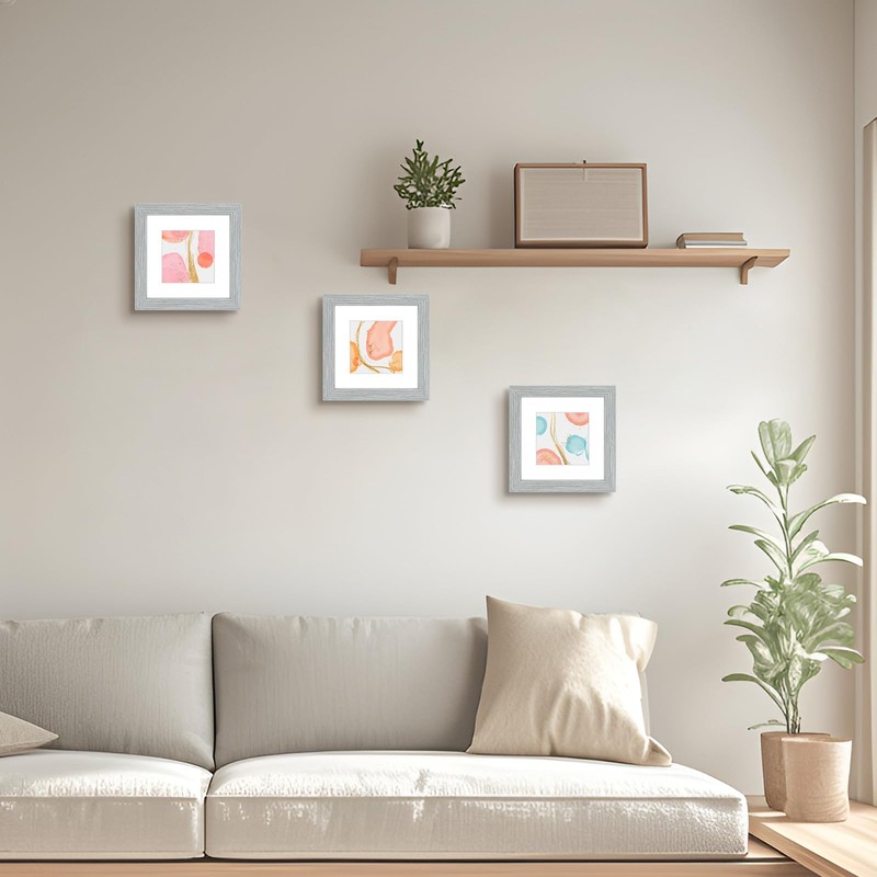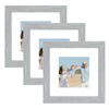 Golden State Art, 6x6 Picture Frame Set of 3, Made of Solid Wood and Real Glass, Display 4x4 Picture with Mat or 6x6 Without Mat, Wall Mounting Square Photo Frames, Grey