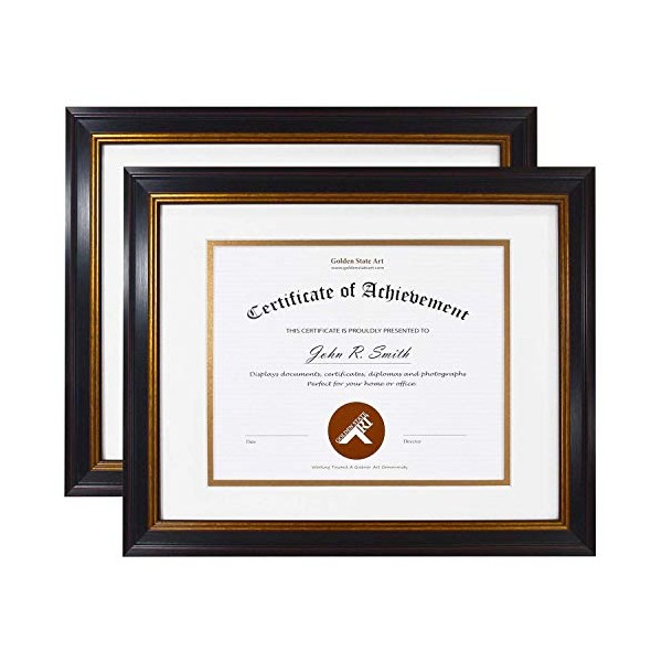 Golden State Art, Frame for Diploma/Certificate Includes White Over Double Mat and Real Glass (Black Gold & Burgundy Frame, 11x14 Frame for 8x10 Certificate, 2-Pack)