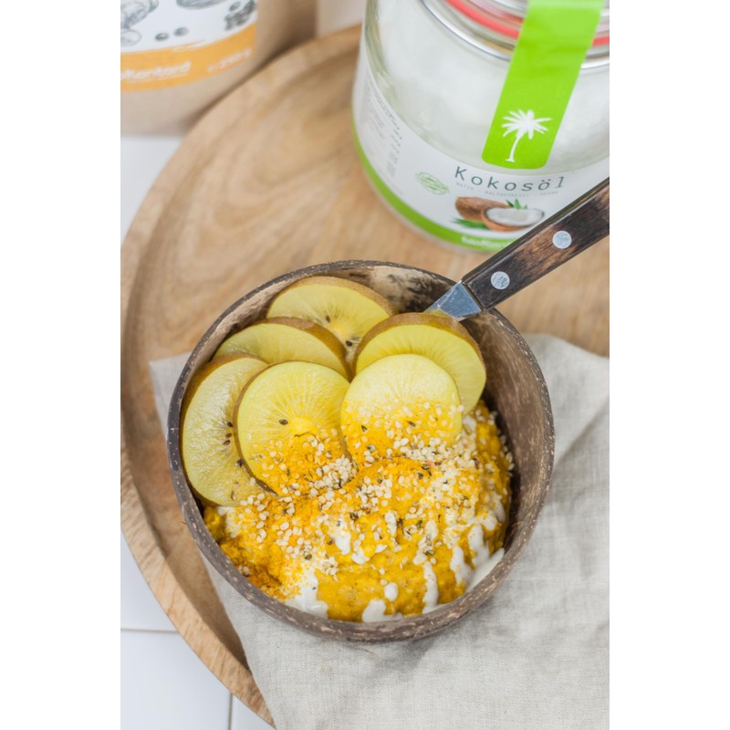 - 🥄ZUBEREITUNG: Unsere milde Kreation eignet sich hervorragend zum Genießen in aufgeschäumter Pflanzenmilch (Haferdrink), frisch gepresstem Orangensaft oder einem fruchtigen Smoothie. Für 200 ml Flüssigkeit solltest du etwa 1 Teelöffel des goldenen Milch Pulvers verwenden.
