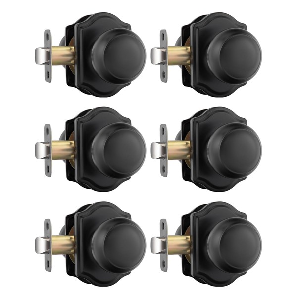 goldenwarm 6 Pack Matte Black Passage Door Knobs, Closet Door Knobs Interior Set Closet & Hallway, Classic Brass Door Knob