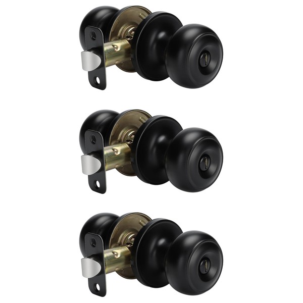 goldenwarm Black Interior Door Knobs, Matte Black Keyless Privacy Door Knob, Black Bedroom Door Knobs, Black Door Knobs Interior Bulk, Indoor Bathroom Door Knob(3 Pack, Matte Black)