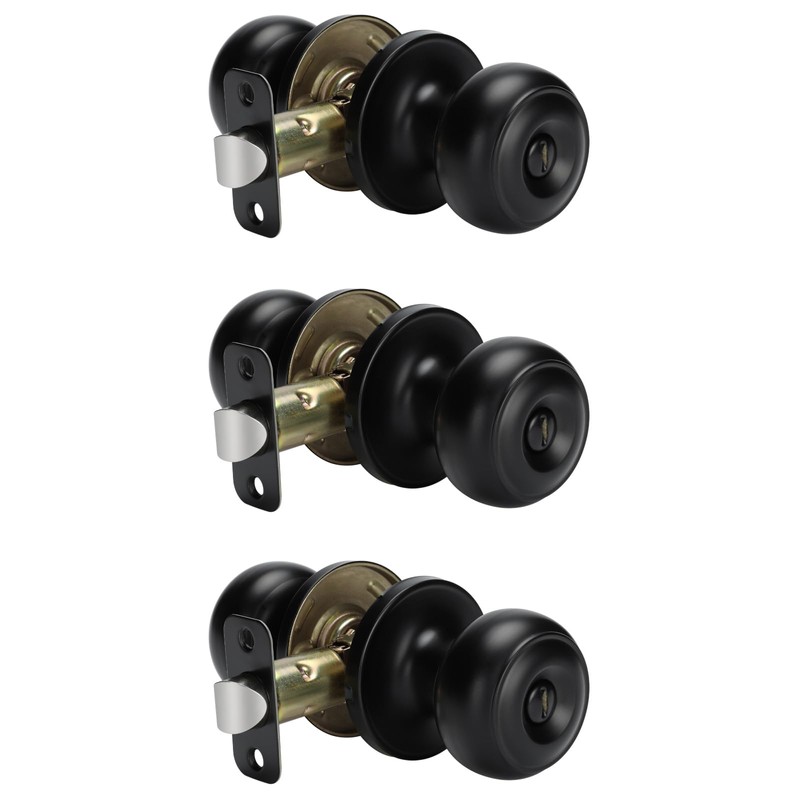 - ๐๐๐๐ ๐๐๐ ๐ก๐๐จ๐ฉ - The door knob package includes 6 single door knobs, 3 strike plates, 3 latches, 1 installation guide and some screws. No keys included. Made of premium stainless steel material. Electroplating paint finish gives you a perfect touch, and easy to grasp the door knobs.