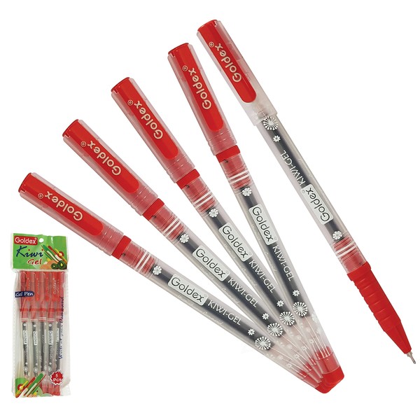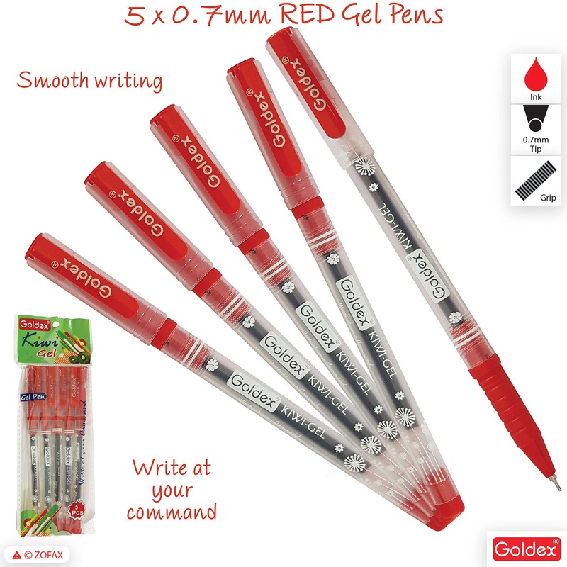 Goldex Kiwi RED 5 x 0.7mm Tip Soft Gel Pens Smooth Flow Ink Superior Writing