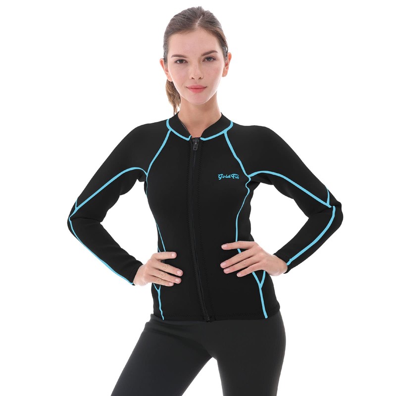 - 【 Expand the water sport season】- GoldFin women's wetsuit top with front zippers is easy to put on and take off quickly. They are most often worn for swimming, water aerobics, water volleyball, surfing, diving, paddling, snorkeling and kayaking, and other water sports.
