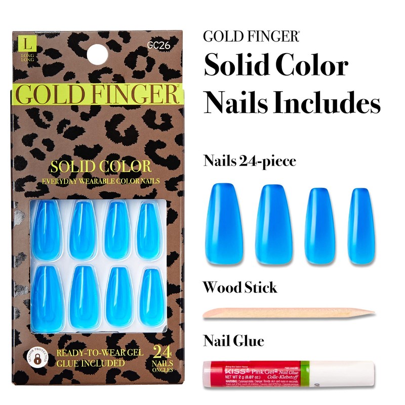 GoldFinger Press On Nails Full Cover Nails Glue On Nails Manicure Long Fake Nails with Glue (Essential)